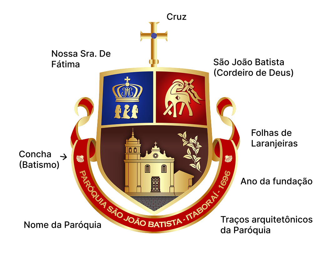 Um brasão é uma composição criada com exclusividade, obedecendo às leis de heráldica com a finalidade de identificar a Comunidade, Instituição, Padre ou Paróquia. Acompanhado da identidade visual, é composto pelos valores e conceitos que identificam a mesma.